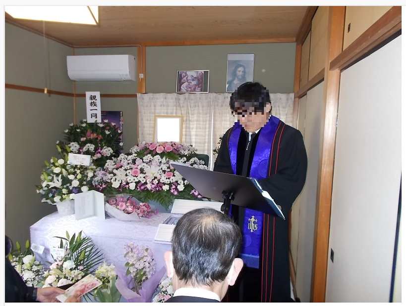 自宅葬・キリスト教式、会葬者12名、牧師さんを自宅に招きお別れ。